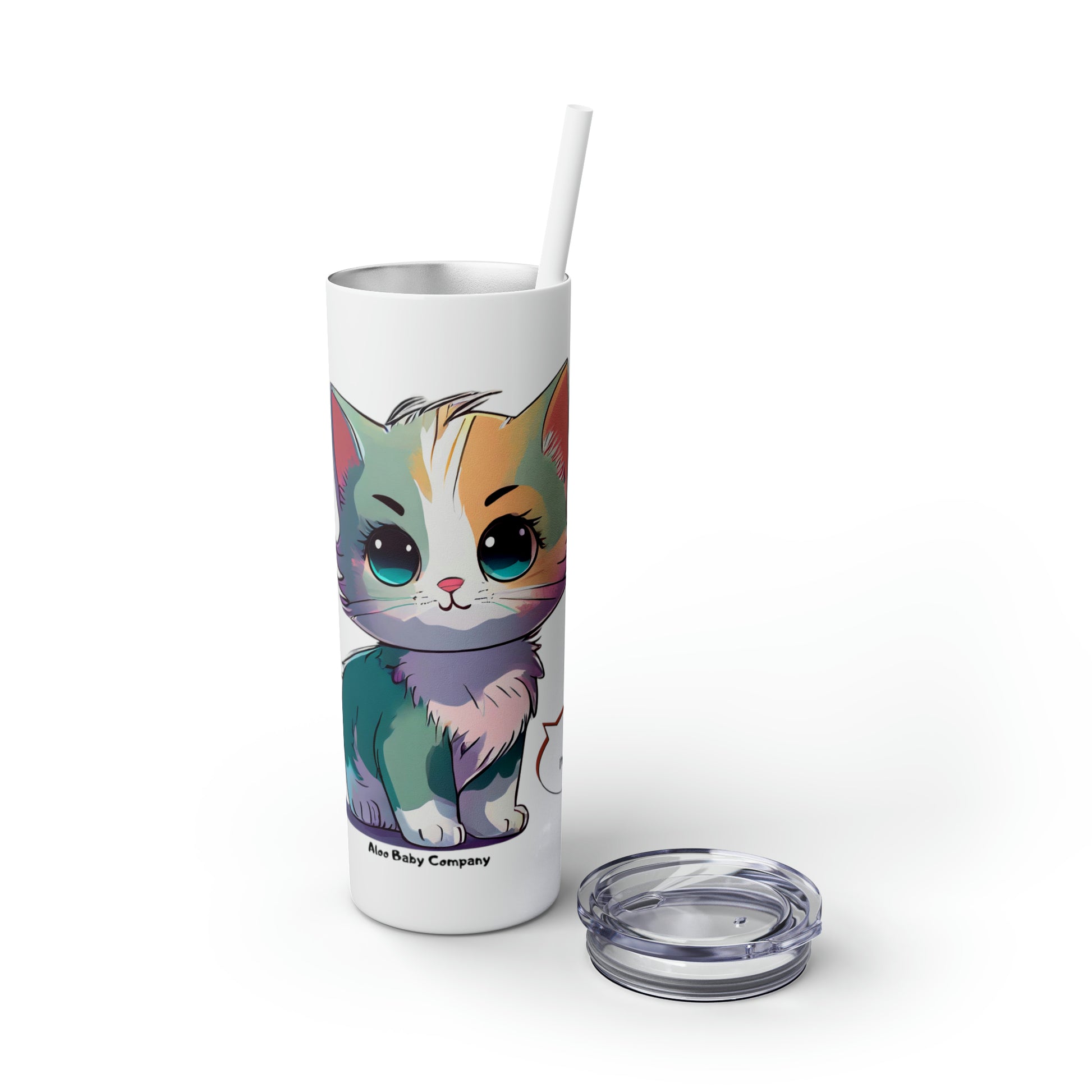 Aloo Baby "Cute Kitten: Hi" - Skinny Bottle with Straw